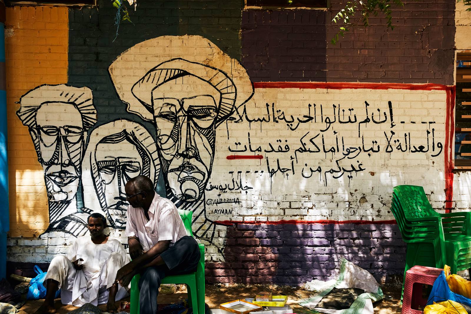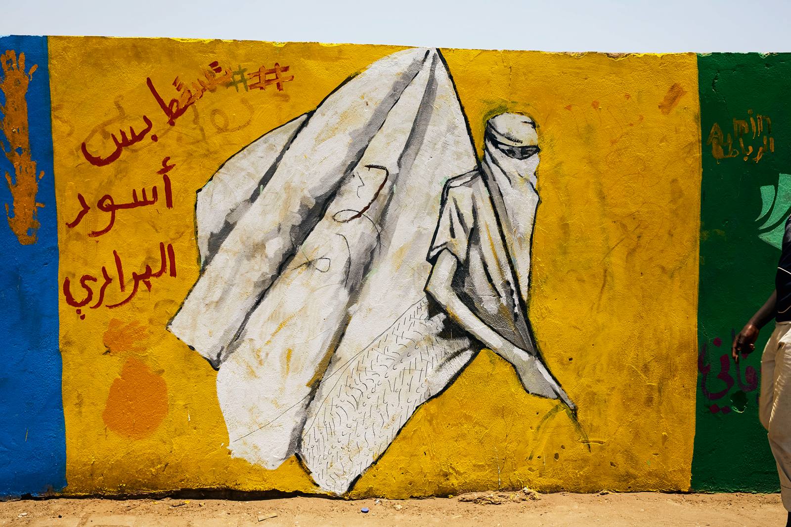 Dagen før Sudans mangeårige diktator Omar al-Bashir blev afsat i et militærkup, troppede tegneseriekunstneren Alaa Satir op foran militærhovedkvarteret i Khartoum med maling og pensler.
