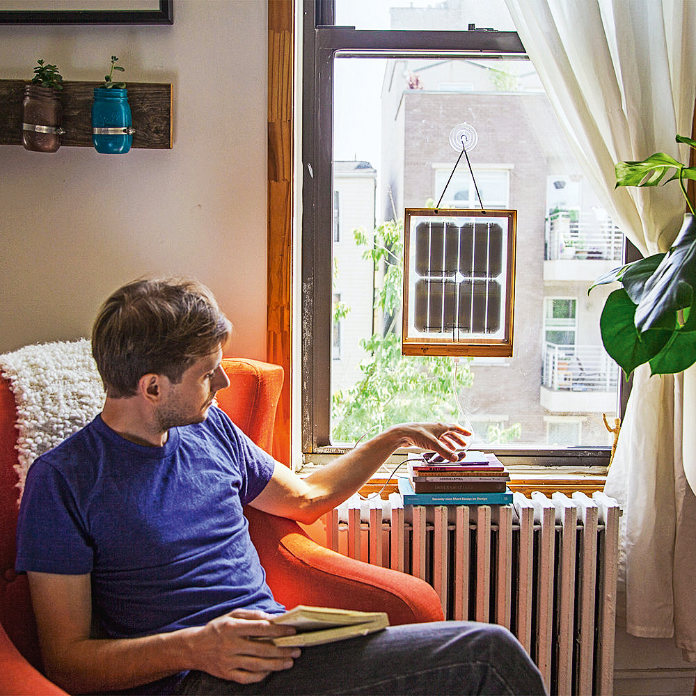 Det er grunden til, at den amerikanske tech-startup Grouphug nu har lanceret Window Solar Charger – en bærbar, solcelledrevet oplader, der kan hænge i lejlighedens vindue og opfange strålerne fra eftermiddagssolen.