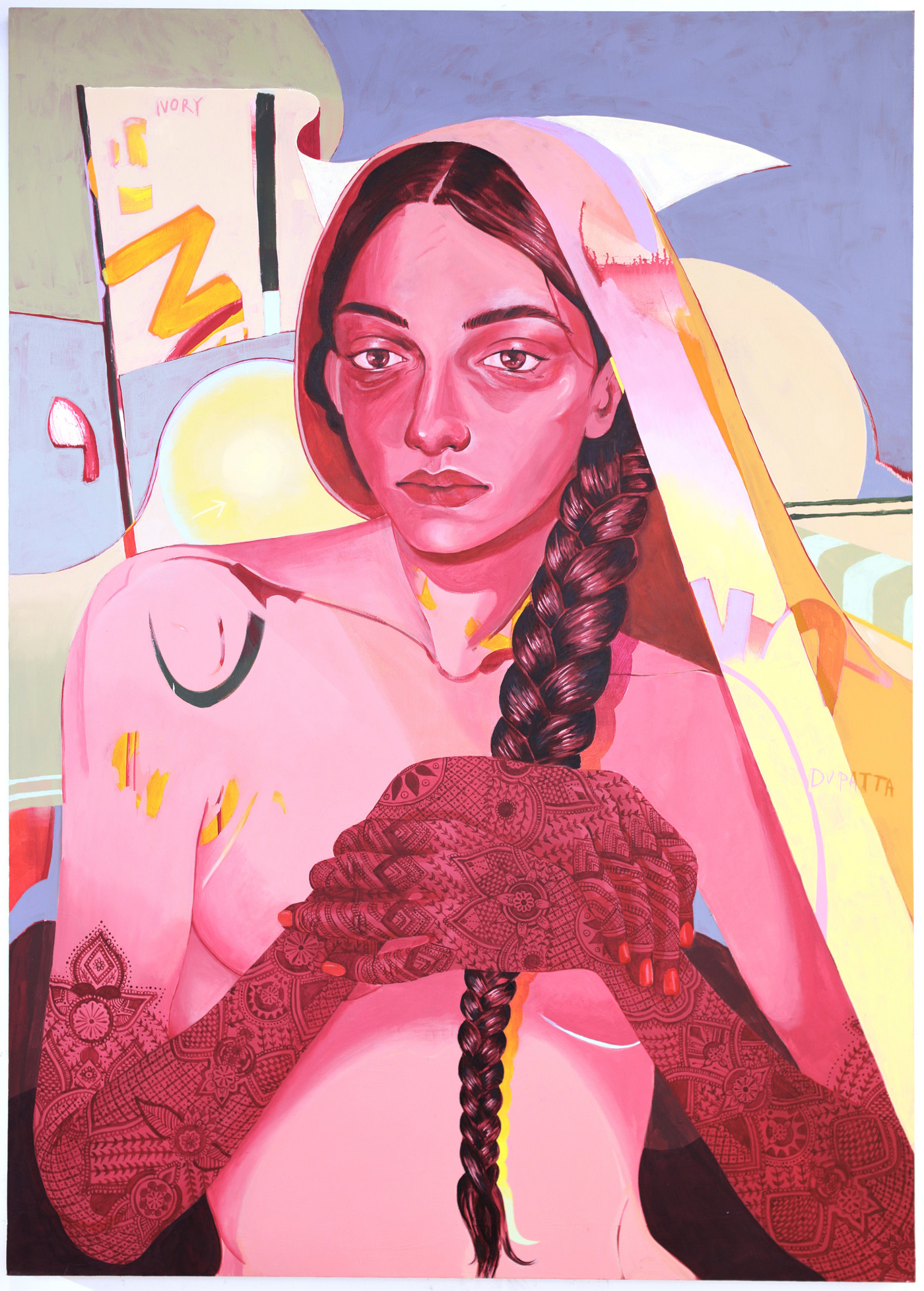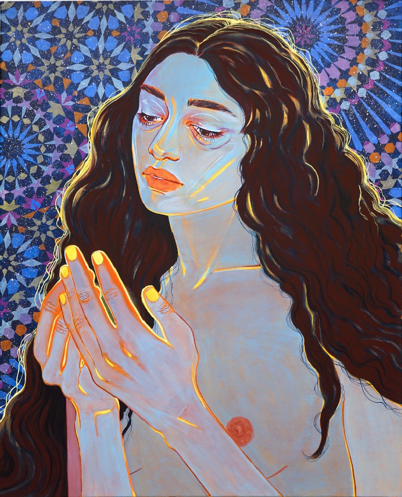 Hendes malerier er æstetiske på overfladen og ved nærmere bekendtskab spækkede med oprør, symbolisme og kultur- og religionskritik.