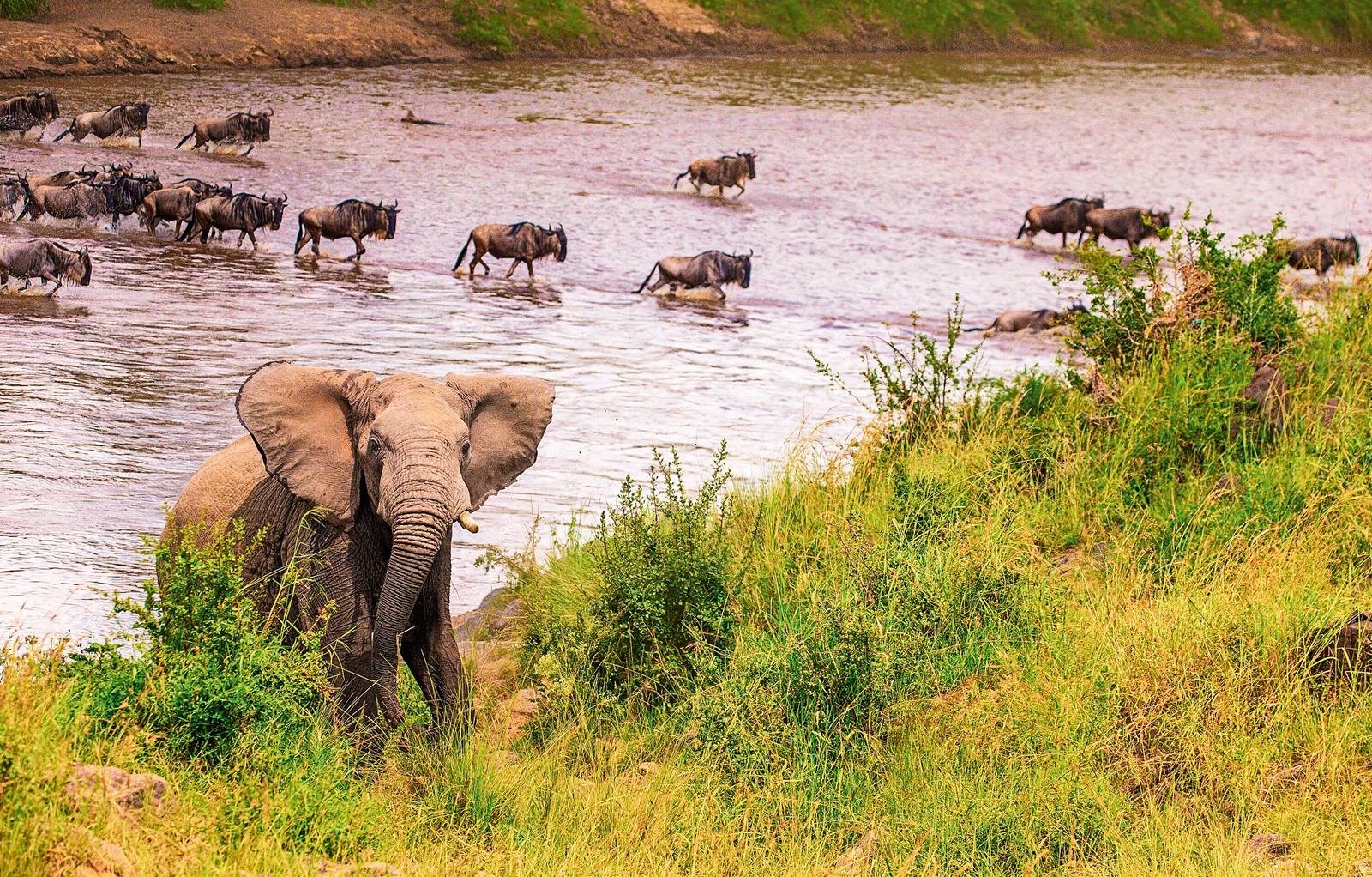 Hvert år vandrer enorme flokke af gnuer og andre vilde dyr fra Serengeti-sletten i Tanzania til nationalparken Masai Mara i Kenya.