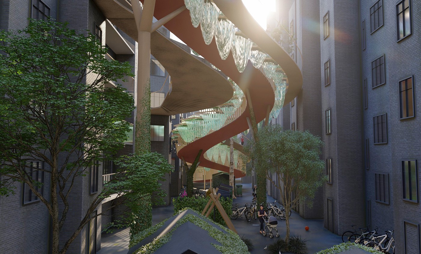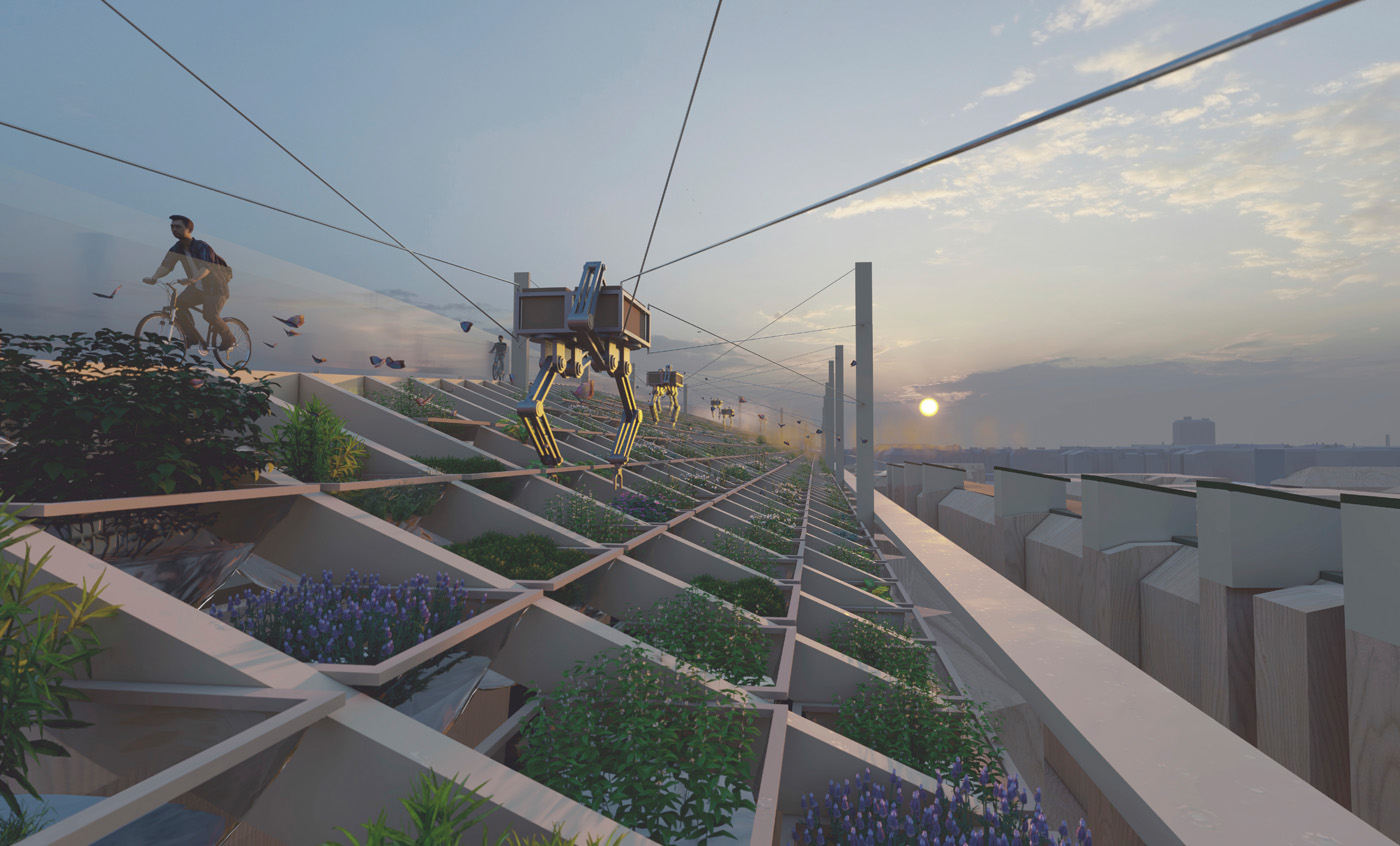 Det betød, at der skulle plantes i flere lag. Hun forestiller sig, at et system af computerstyrede ”hydroponiske bede” oppe over hustagene vil give afgrøderne optimale lysforhold og vækstbetingelser.
